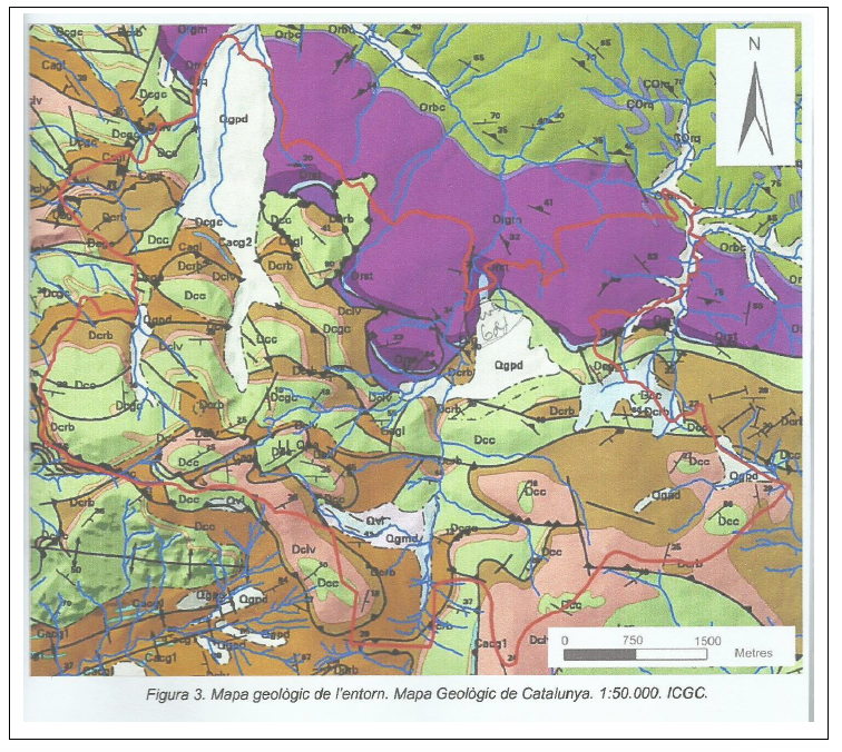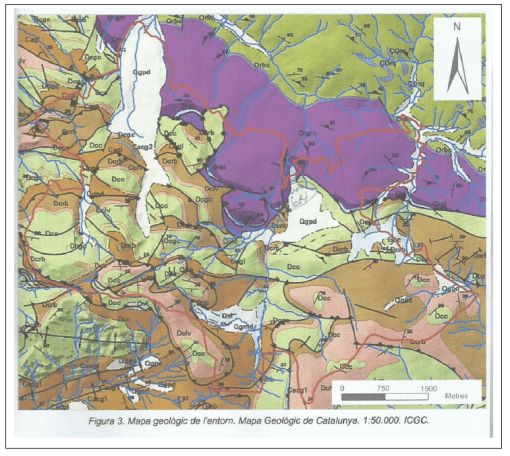 INFORMACIÓ EXTRETA DEL MAPA GEOLÒGIC DE LA PG.10 Fig . 3 i PGS. 7,8 i 9.